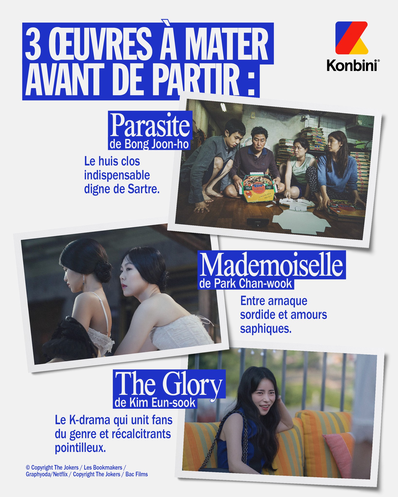 Pendant deux ans, j'ai été en charge de la production des carrousels Instagram pour les différentes verticales de Konbini (cinéma, food, sport, jeux vidéo). En collaboration étroite avec une vingtaine de journalistes et chefs de rubrique, ma mission était de traduire leurs sujets en contenus visuels percutants, dans un rythme de production quasi quotidien. Tout en étant le garant du respect de la charte graphique, j'ai constamment mis à profit mes compétences en design pour proposer des compositions innovantes visant à maximiser la clarté de l'information et l'engagement de la communauté. Cette expérience long-terme dans un média leader m'a permis de développer une grande rigueur et une forte capacité d'adaptation pour créer des contenus optimisés pour les réseaux sociaux.